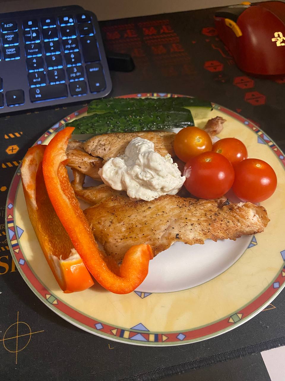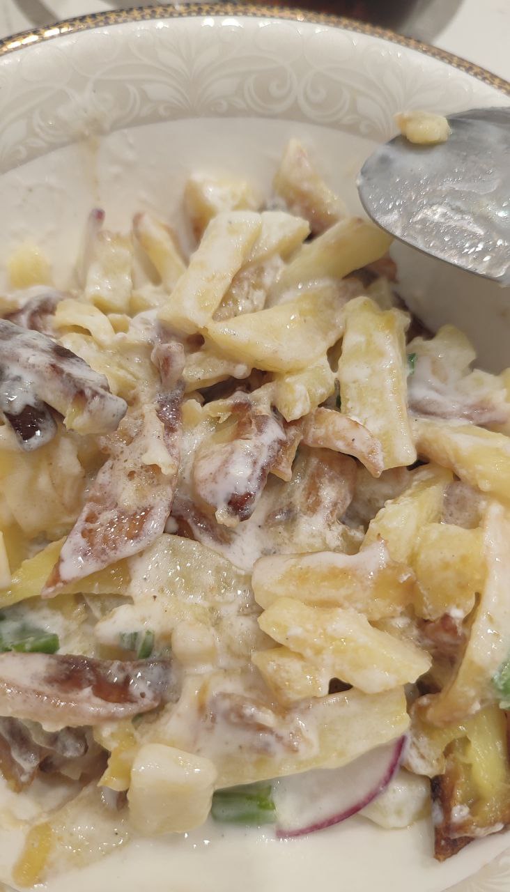 Картофель жаренный в соусе из сметаны с зеленью и редиской